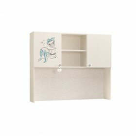 Состоит из: Двух закрытых отделений с полками, открытых полок и задней стенки для записок.Надстройка..